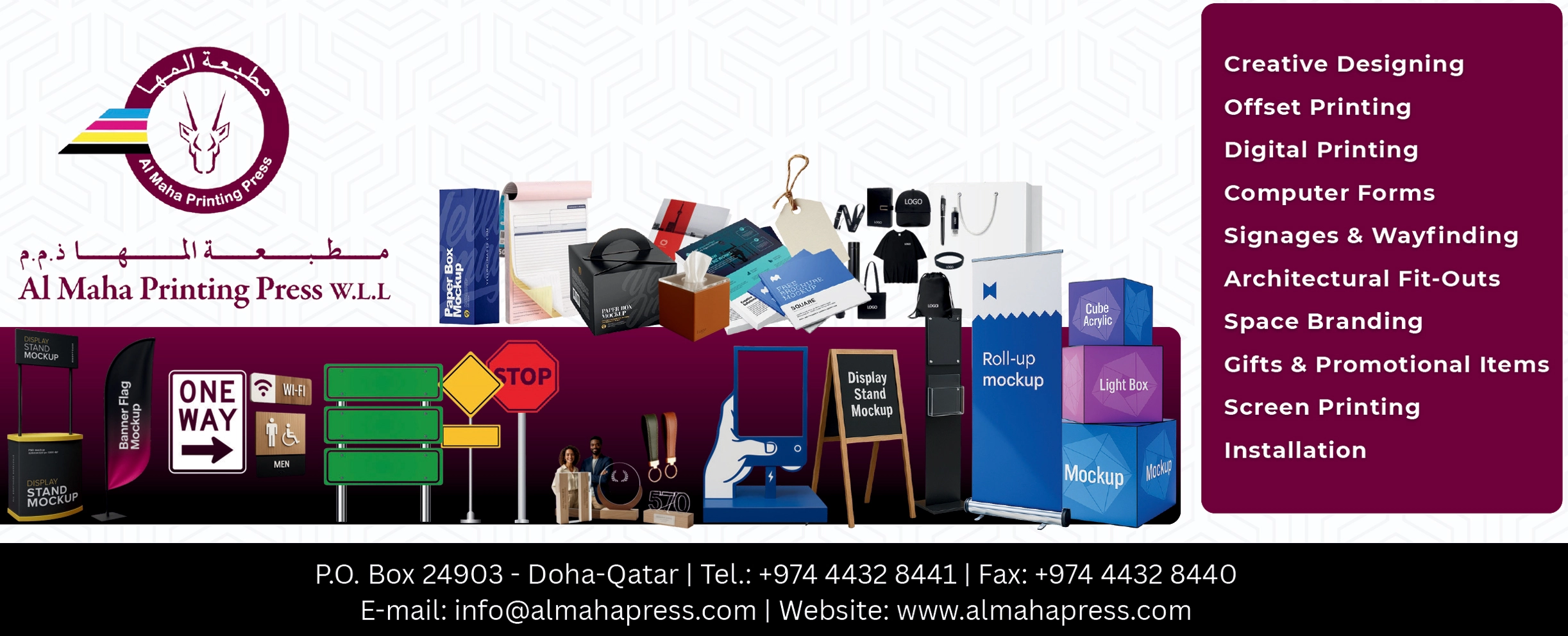 Al Maha Printing Press W.L.L. is a full-fledged provider of high-quality Offset, Digital, and Screen Printing services in Qatar. We specialize in commercial print, signage, and promotional items for all business needs.