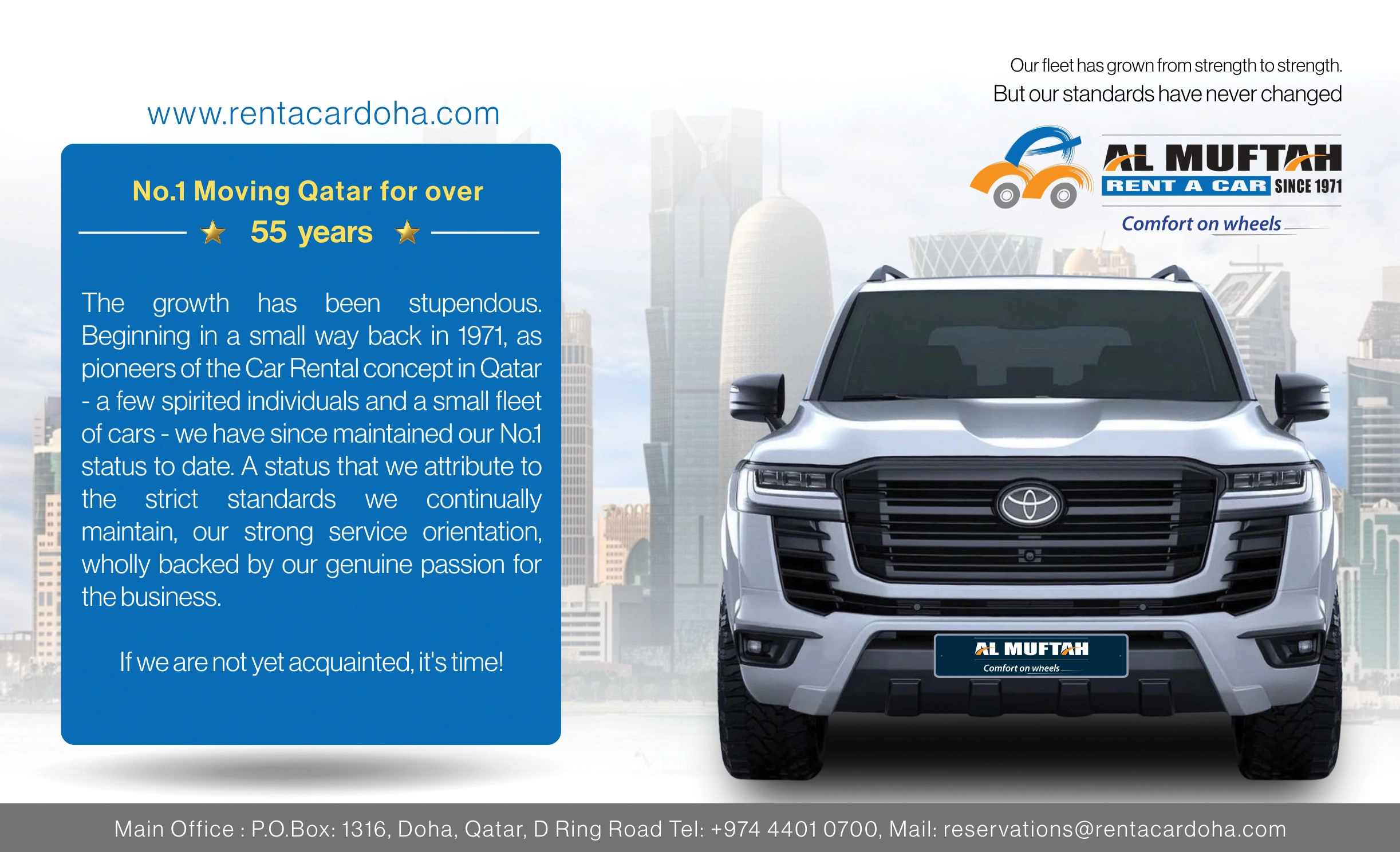 Al Muftah Rent-A-Car provides reliable car rental services in Qatar, offering a variety of vehicles for short-term and long-term hire.