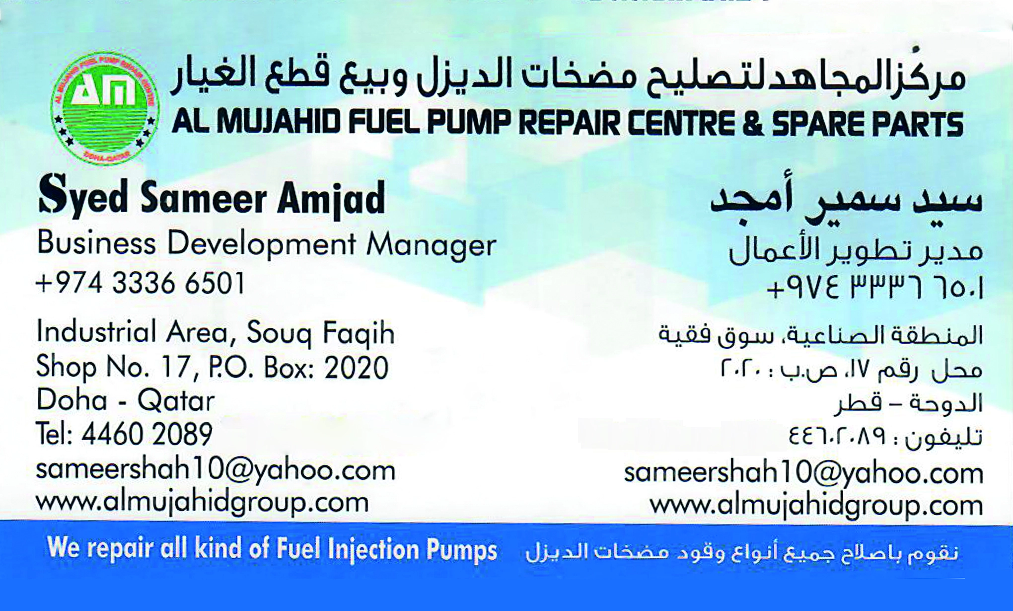 Visit Al Mujahid Fuel Pump Repair Centre & Spare Parts in Qatar for expert auto spare parts, garage, and auto electrical services. Reliable solutions for all vehicle maintenance and repairs. Listed on QBCD – Qatar’s Business Card Directory.