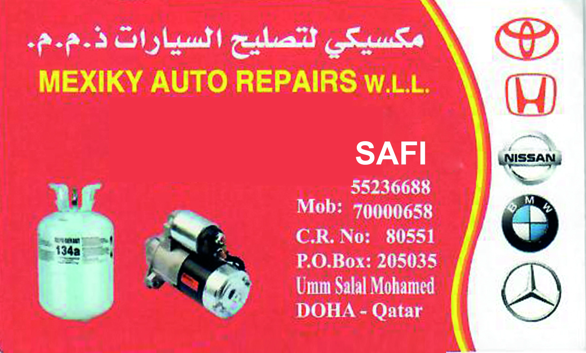 Get professional garage and auto electrical services at Mexiky Auto Repairs W.L.L. in Qatar. Expert vehicle maintenance, diagnostics, and repair services you can trust. Listed on QBCD – Qatar’s Business Card Directory.