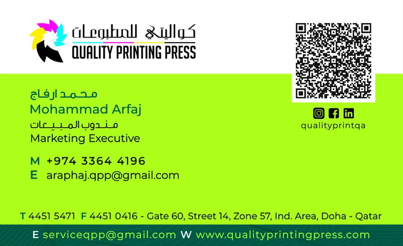 Quality Printing Press W.L.L. provides high-quality Offset, Digital, and Screen Printing services in Qatar. Experts in commercial printing, luxury finishing (foiling, die-cutting), and corporate stationery solutions.