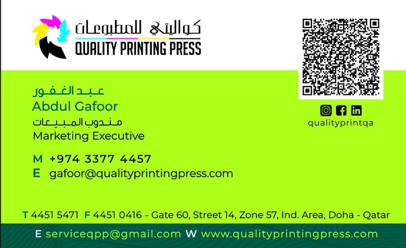 Quality Printing Press W.L.L. provides high-quality Offset, Digital, and Screen Printing services in Qatar. Experts in commercial printing, luxury finishing (foiling, die-cutting), and corporate stationery solutions.
