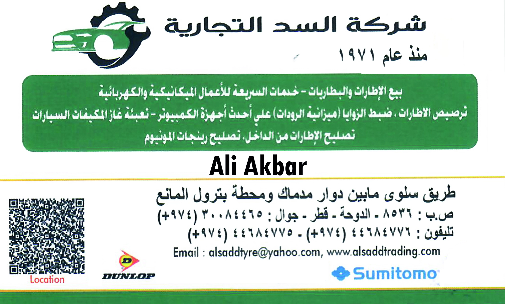 Discover Al Sadd Trading Co, your one-stop destination for tyres, garage, and auto electrical services in Qatar. From car maintenance to electrical repairs, we offer reliable, professional services. Listed on QBCD – Qatar’s trusted Business Card Directory.