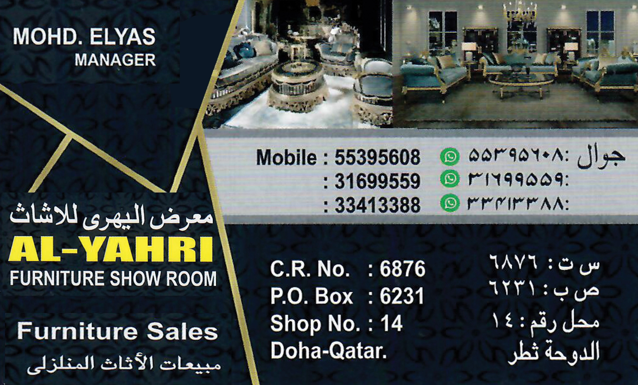 AL YAHRI FURNITURE SHOW ROOM offers high-quality furniture and stylish home decor solutions in Qatar. Find elegant and durable pieces for your home or office.