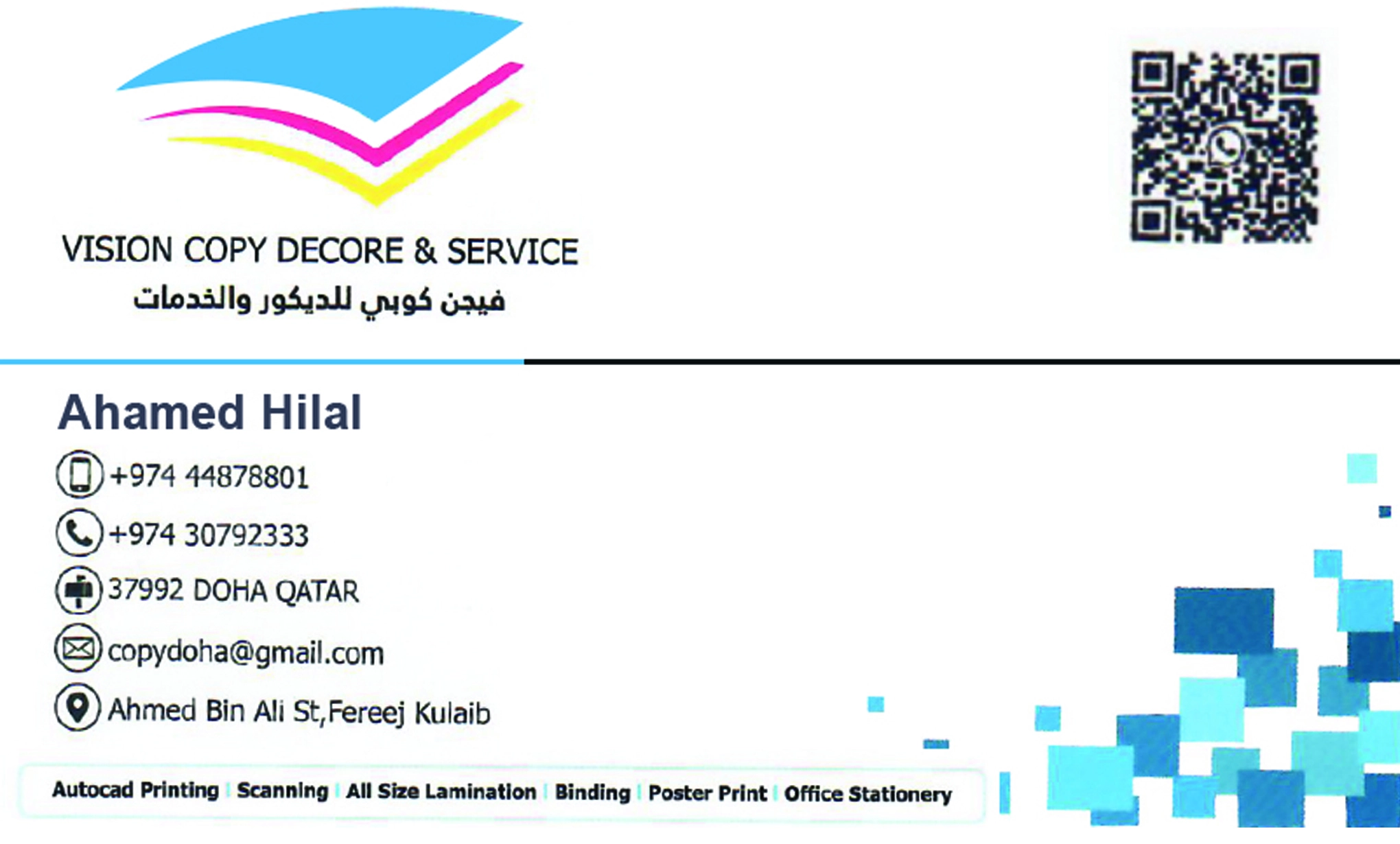 Vision Copy Decore & Service provides professional advertising and creative solutions in Qatar, specializing in branding, marketing campaigns, media production, and promotional services.